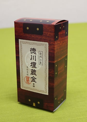 赤城山麓に眠ると云われる徳川埋蔵金伝説をもとに千両箱と小判をイメージしたサブレサンドです。